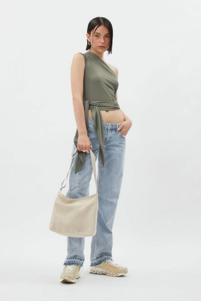En minimalistisk, medelstor handväska som rymmer allt du behöver i vardagen, tillverkad i mjuk och stadig batist av linne. Väskan är fodrad med taft och stängs med dragkedja. Den har ett vävt, justerbart axelband och en innerficka. Mått: sidohöjd 25 cm, baslängd 27 cm, basbredd 10 cm.