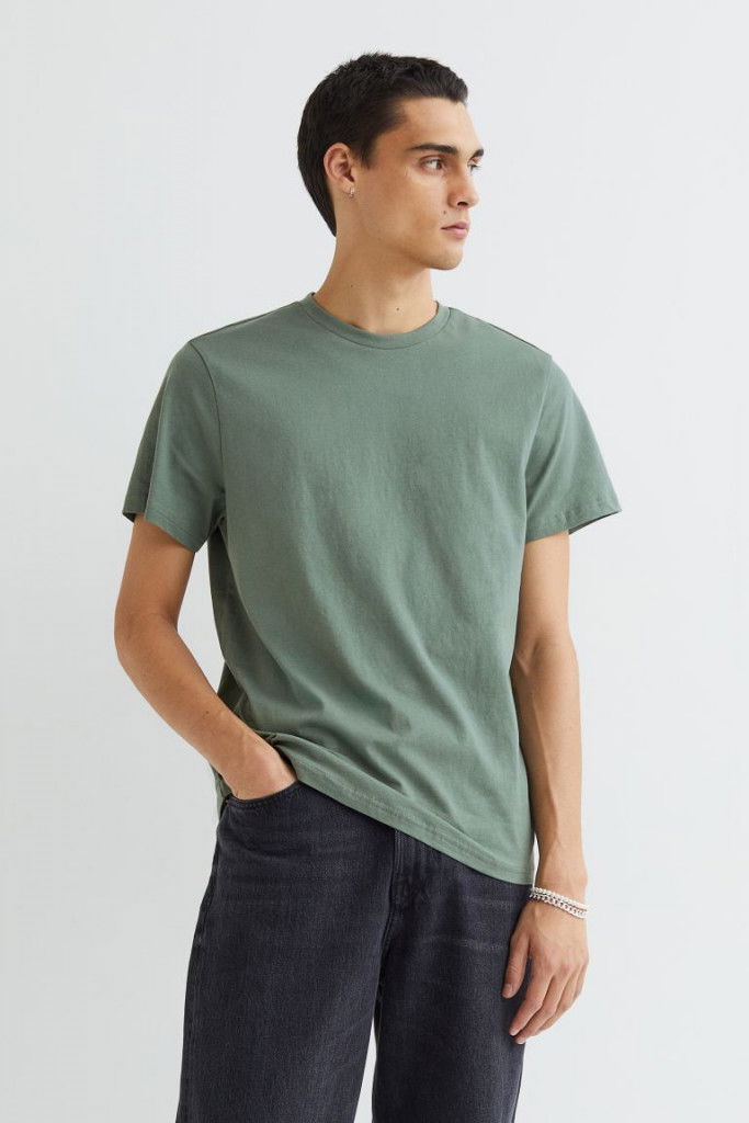 Beskrivning av Regular Fit Round-neck T-shirt Regular-fit T-shirt in soft cotton jersey with a round, rib-trimmed neckline and a straight hem.