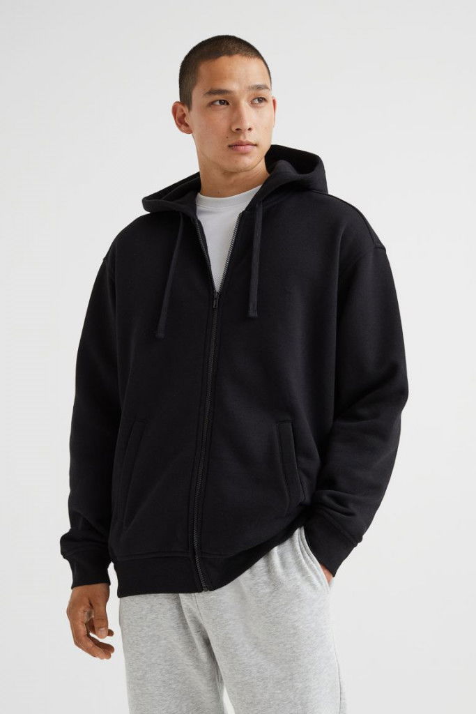 Zip-through hoodie in sweatshirt fabric. Relaxed fit with a jersey-lined, drawstring hood, a zip down the front, diagonal, welt side pockets and ribbing at the cuffs and hem. Soft brushed inside.