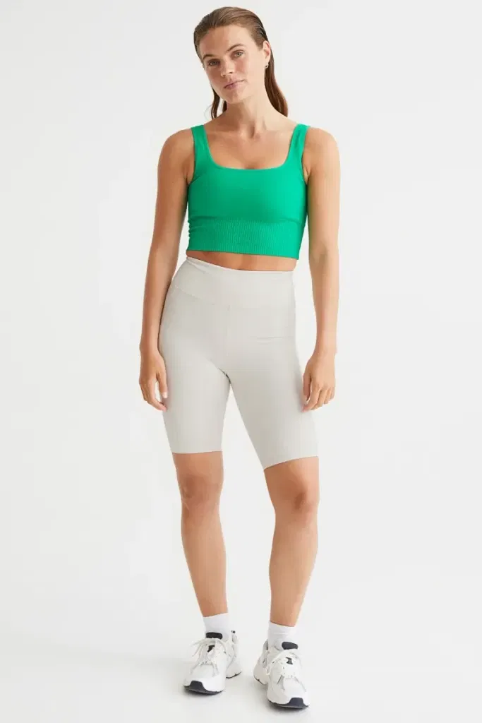 Ett par trekvartslånga cykelbyxor i snabbtorkande funktionsmaterial som håller dig torr och sval vid träning. Tightsen har hög midja med bred mudd. Öppen ficka på ena benet för snabb åtkomst till mobilen eller gymkortet.